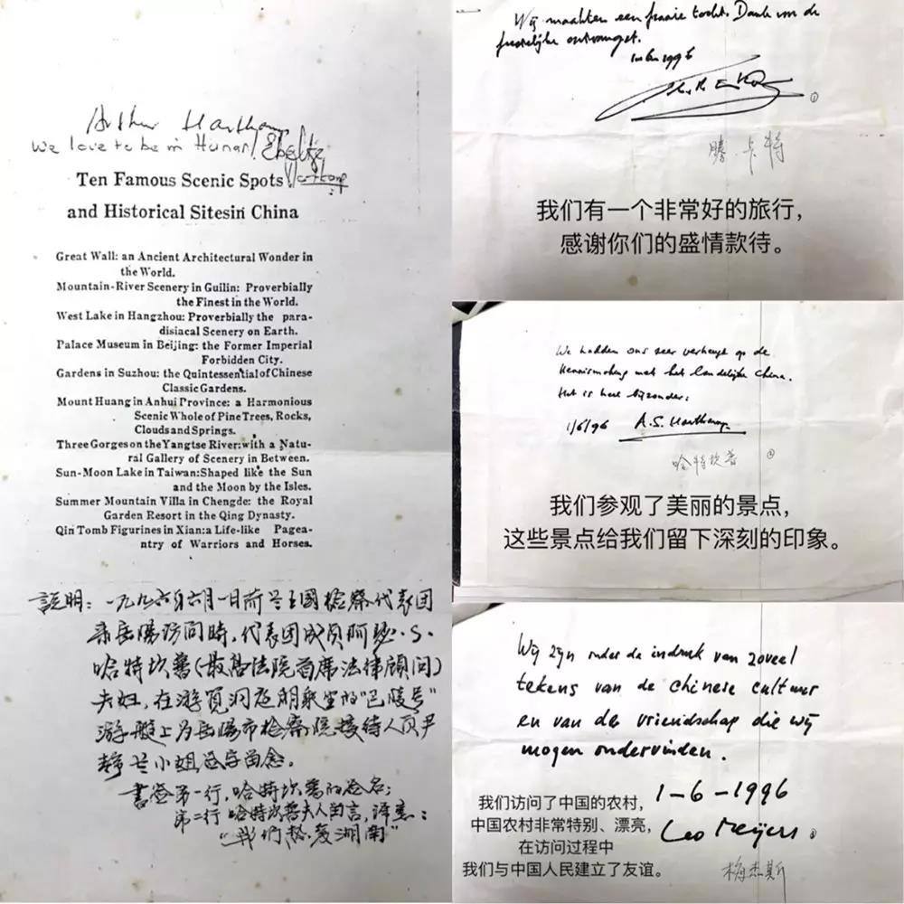 1996年6月1日,荷蘭王國檢察代表團來岳陽訪問,離開前留下珍貴筆跡。