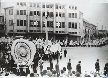 1976年9月18日,岳陽各界在東風廣場召開毛澤東主席追悼大會。主席臺中央懸掛著毛主席的遺像,由白色的素花和長青松柏環(huán)繞,主席臺兩旁及臺前擺滿了悼念毛主席的花圈。