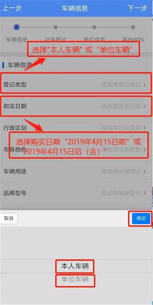 1.選擇“本人車輛”或者“單位車輛”,點擊 “確定”