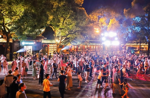 古風歌曲演唱、古典舞蹈、洞簫演奏、香道展示 等文化節目在主舞臺一一呈現,五十余名同袍參加了商 場的漢服巡游活動,更有十幾位身著漢服的商家組成了 妙趣橫生極具特色的古風市集,吸引了眾多路人駐足。